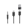 Toimii tietokoneessa, jossa on Windows, Mac tai Chrome sekä Android- tai iOS-mobiililaitteessa, jossa on 3,5 mm:n, USB-C- tai USB-A-portti. 3,5 mm:n liittimen yhteensopivuus voi riippua laitteen mallista. Toiminta mobiililaitteella USB-C:n kautta riippuu laitteen mallista (suositus on Android 10 tai sitä uudempi).