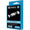 Tämä älykortin lukija voidaan yhdistää matkapuhelimeen, tablet-laitteeseen, kannettavaan tietokoneeseen tai PC:hen riippumatta siitä, onko siinä perinteinen USB-A-portti, micro-USB-portti vai USB-C-portti. Lukee SD- ja microSD-korteilta ja kirjoittaa niille. Valmistettu alumiinista. Kätevä koko, optimaalinen nopeus.