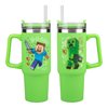 Pidä itsesi virkeänä koko päivän Minecraft Green -matkamukin avulla! Vihreää mukia koristaa Minecraftista tutut Steve ja Creeper! Tämä 900 ml eristetty, pehmeäpintainen muki säilyttää juomasi kylmänä tai kuumana tuntikausia, olitpa sitten kotona, töissä tai seikkailemassa. Kahva helpottaa mukin kantamista ja kapea pohja sopii täydellisesti auton mukitelineeseen.