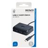 Pieni ja kompakti USB-A-hubi, jossa on neljä porttia. Tuotteessa on mahdollisuus ylimääräiseen virransyöttöön, mikä mahdollistaa suuritehoisten oheislaitteiden käyttämisen. Näihin kuuluvat esim. USB-näytöt, kuulokemikrofonit ja ulkoiset kiintolevyt.