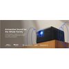 Projektorin sijoitus ja kaiuttimien koko tasapainotetaan asiantuntevasti kompaktissa rungossa. ”Projektoriin sopiva” suunnittelumme takaa miellyttävän pehmeän ja täyteläisen keski- ja matalataajuisen äänen, joka upottaa sinut tarinoihin.