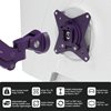 Painokapasiteetti: 1 - 9 kg VESA-yhteensopivuus: 75 x 75, 100 x 100 VESA-pikavapautus: Kyllä Kallistusalue: +45° ~ -45° Kääntöalue: +90° ~ -90° Kierto: 180° / 360° Kaapelinhallinta: Sisäänrakennettu Kaasujousen jännite: Säädettävissä