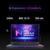 Et voi voittaa vihollista, jos et näe heidän tulevan. Strix G16:ssa on upea ROG Nebula -näyttö, jonka ultranopea paneeli varmistaa, ettet menetä hetkeäkään. 240Hz QHD 16:10 -paneeli, jossa on 500 nitsin kirkkaus, 100 % DCI-P3-peitto ja 3 ms:n vasteaika - tämä paneeli on pikselintarkka myös kiivaimmissa tulitaisteluissa. Lisäsimme Ambient Contrast Ratio (ACR) -kerroksen vähentämään heijastuksia ja parantamaan kontrastia. Stix G16:n näyttö tarjoaa myös fantastiset värit, Dolby Visionin, Adaptive-Sync-tuen ja 90 %:n näytön ja rungon suhteen, mikä takaa erinomaisen peli- ja katselukokemuksen.