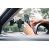 Nopea puhelinteline on helppokäyttöinen, turvallinen ja kätevä. Voit valita, asennatko pidikkeen auton tuuletusaukkoon vai kiinnitätkö sen imukupilla kojelautaan tai ikkunaan. Kun puhelin asetetaan pidikkeeseen, sivukiinnitysvarset sulkeutuvat automaattisesti ja pitävät puhelimen paikallaan. Varsi avautuu painamalla laturin kummallakin puolella olevaa painiketta. Pidikettä voi kääntää 360°, mikä mahdollistaa optimaalisen näkymän ja helpomman toimintojen käytön.