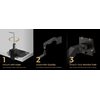 • Kestävä rakenne: Kaasujousimekanismi on testattu 25 000 nostokertaa, mikä takaa pitkän käyttöiän. Mukana toimitettava vahvistuslevy jakaa painon tasaisesti pöydän pinnalle, suojaten sitä naarmuilta ja vaurioilta.