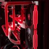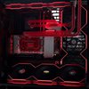 Ja kuten odottaa sopii, kokoonpanon prosessori ja näytönohjain ovat nestejäähdytettyjä, joten voit heittää hyvästit lämpöhuolillesi. Jäähdytyskomponenteissa on käytetty laadukkaita valmistajia, kuten EK-Waterblocks, Alphacool, Watercool ja Corsair. Punainen valaisu punaisine jäähdytysnesteineen tarjoavat teemaan soveliaan kirsikan tämän silikonikakun huipulle!