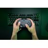 Ohjaimen ergonominen muotoilu on suunniteltu pitkien pelisessioiden varalle, ja siinä on teksturoidut kumiset kahvat, jotka varmistavat pitävän otteen. Tasapainotettu rakenne vähentää käsien rasitusta ja lisää mukavuutta pitkään jatkuvissa pelisessioissa.