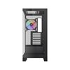 Kotelo saapuu neljällä esiasennetulla PWM ARGB -tuulettimella: kolme sivupaneelissa ja yksi takapaneelissa. Tämä kokoonpano takaa tehokkaan jäähdytyksen heti käyttöönotosta ja optimoi ilmankierron, jotta järjestelmäsi pysyy ihanteellisissa lämpötiloissa myös raskaassa käytössä.