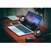Creative Pebble V3 voidaan liittää läppäriisi tai pöytätietokoneeseesi vain yhdellä USB-C-johdolla, josta se saa niin tehon kuin äänenkin. Tämä tarkoittaa vähemmän sotkua ja enemmän työskentelytilaa!