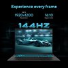 Pysy kilpailukykyisenä ammattipelaajien kanssa käyttämällä FHD 144 Hz -näyttöä. Tämä takaa uskomattoman tasaisen ja realistisen pelikokemuksen, joka vähentää latenssia, takkuilua ja visuaalista repeilyä optimaalisen pelikokemuksen takaamiseksi. Vaikuttavan 89 %:n näyttö-runkosuhteen ansiosta saat paremman kokemuksen videoista ja peleistä tinkimättä siirrettävyydestä.