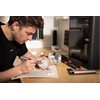 Poran ympärillä oleva sisäänrakennettu LED-rengas valaisee työalueen tasaisesti ilman varjoja, tarjoten optimaalisen näkyvyyden pieniin yksityiskohtiin ja ahtaisiin tiloihin. Kompakti muotoilu painaa vain 108 grammaa ja istuu mukavasti käteen. Porassa on liukumaton pinta, joka helpottaa tarkan hallinnan ylläpitämistä.