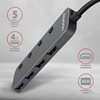 AXAGON (Outlet) 4-porttinen 3.2 Gen1 USB-A -hubi, porttien sulkutoiminnolla, lisävirralla, 0,2m, harmaa