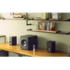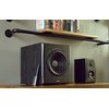 Subwooferin 8 tuuman bassoelementti, jossa on valettu alumiinirunko ja joka hyötyy pitkäliikkeisestä suunnittelusta, voi toistaa bassoa taajuudella 40 Hz:iin asti. Tehokas bassovahvistin voi tuottaa jopa 70 watin (RMS) lähtötehon. Laajennettu bassorefleksiportti on kalibroitu tekemään bassosta voimakkaamman. Aloita konsertti, suosikkipelisi tai elokuva, jotta voit tuntea syvän basson lämmön.