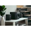 Klassisen ja ylellisen muotoilun ansiosta se ei ole vain katseiden kiinnittämistä varten, vaan myös korkealaatuisen äänentoiston vuoksi. Subwooferin ja satelliittikaiuttimien kokopuiset kotelot täydentävät minkä tahansa huoneen sisustustyyliä, lisäksi ne minimoivat akustisen resonanssin ja vähentävät vääristymiä.