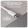 240 W PD 3.1 Extended Power Range (EPR) -ominaisuudella varustettu kaapeli tarjoaa tehokkaan, tulevaisuudenkestävän 240 W latauskapasiteetin kaikille USB-C-laitteille, MacBookeille, PC-kannettaville, tableteille ja puhelimille. Lataa nopeasti kaikki kannettavat tietokoneet, mukaan lukien 16-tuumainen MacBook Pro, jonka akku latautuu 0–50 %:iin noin 30 minuutissa.