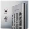 Alumiininen kotelo yhdessä lämmönjohtavien tyynyjen kanssa haihduttaa lämpöä asennetuista M.2 SSD-levyistä. Jäähdytystä tukee aktiivinen tuuletin, joka kierrättää ilmaa laitteen sisällä jatkuvasti. Tämä ylläpitää optimaalisen käyttölämpötilan pitkäkestoisen kuormituksen aikana (esim. kloonaus tai suuret tiedonsiirrot). Ylikuumenemisen ja ”Thermal Throttling” -ilmiön aiheuttaman suorituskyvyn heikkenemisen riski on minimoitu. Tämä vakauttaa suorituskyvyn ja pidentää SSD-levyn käyttöikää.