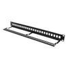 19" kytkentäpaneeli, 24 porttia, ei sisällä liitinmoduuleita, kaapelituki, 1U, 19", metallia, musta