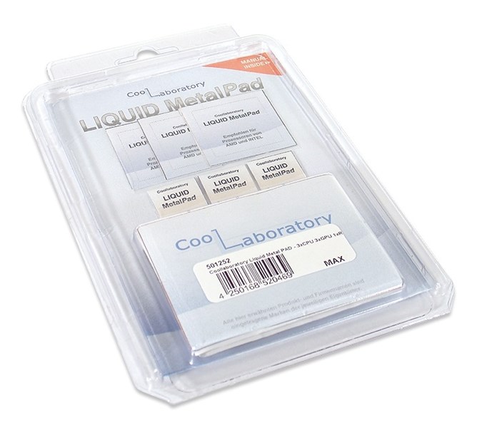 - 3 x CPU - Liquid MetalPad suojakotelossa, mitat: n. 38 x 38 mm