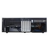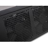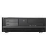 Materiaali: SECC-teräs, alumiini, muovi Yhteensopivuus: mATX, Mini-ITX, Mini-DTX Väri: Musta Laitepaikat: - 1 x 5.25" ulkoinen - 4 x 3.5" + 1 x 2.5" tai 3 x 3.5" + 2 x 2.5" sisäinen Laajennuspaikat: 5 Tuulettimet: Oikea kylki: 2 x 120mm (1200RPM, 20dBA) Vasen kylki: 1 x 120mm (1200RPM, 20dBA) Tyhjät tuuletinpaikat: Takana: 2 x 80mm Etupaneelin I/O-portit: 2 x USB 3.0, mic, audio Mitat: 440 x 150 x 340mm, 5.6 kg Virtalähde: Ei mukana, standardi PS/2 -virtalähteen paikka (max 150mm)