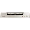 KVM-kytkin yhden päätteen näppäimistöstä, hiirestä, näytöstä ja stereoäänestä/mikrofonista neljään tietokoneeseen.